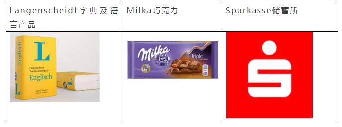 以下两个来自德国的司法判例,Langenscheidt字典及语言产品、Milka巧克力,用以标示其商品的单一颜色分别在1956年、1998年获得注册,通过长期、一贯的使用,Langenscheidt黄色和Milka紫色已经成为相应品牌的标志色,被告在类似商品上使用近似的颜色被判定为侵权。Sparkasse储蓄所2007年申请将红色申请单一颜色注册,奥地利Oberbank AG银行和西班牙Santander银行随即提出异议,该案现在仍在审理当中。